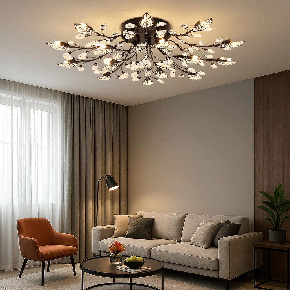 De Crystal Luxury Plafondlamp is ontworpen om een warme, aangename gloed af te geven die de kamer vult zonder hard aan te komen. Of je nu geniet van een diner aan de keukentafel of tot rust komt in de slaapkamer, deze lamp creëert de perfecte sfeer.