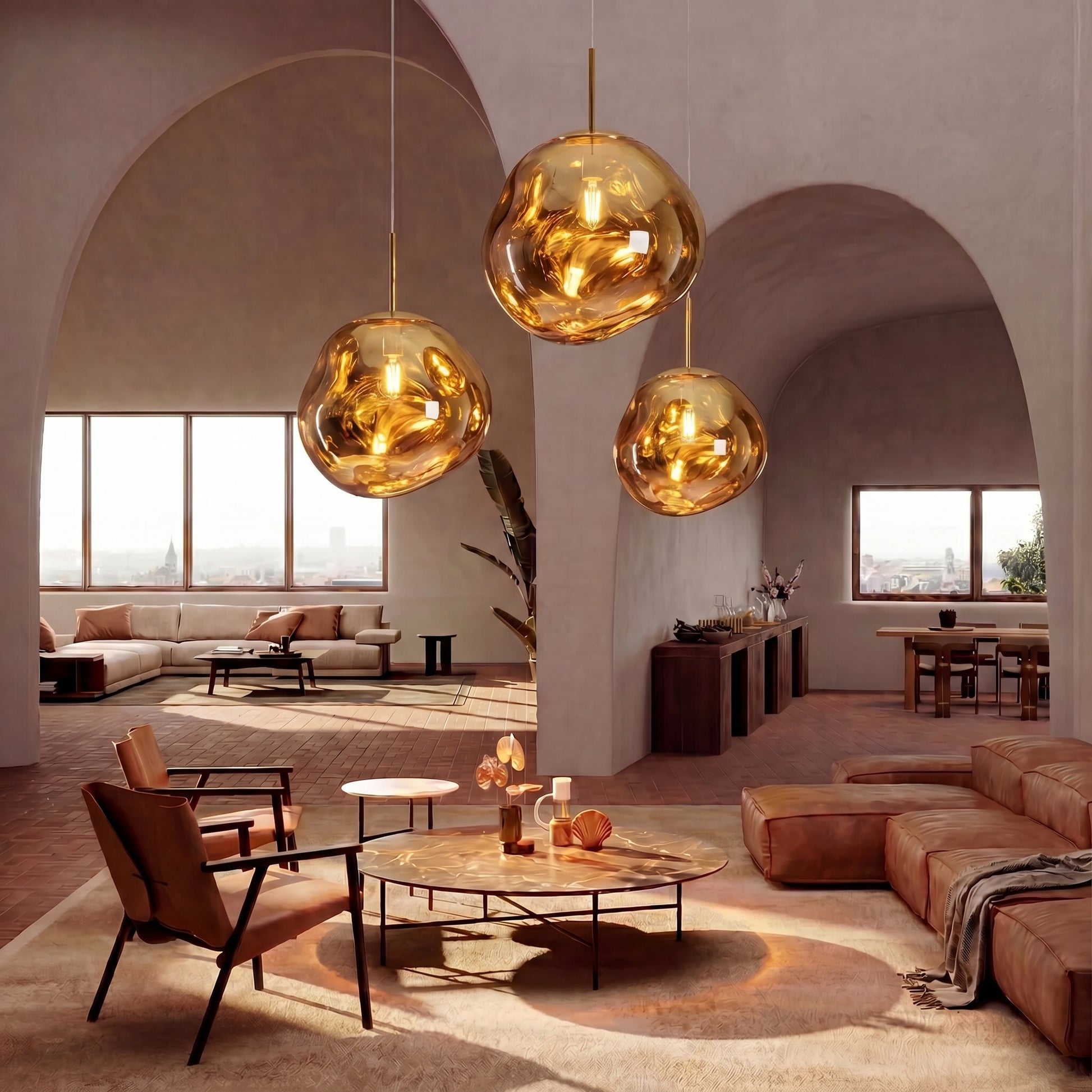 De Melt Glass Hanglamp is ontworpen om een warme, aangename gloed af te geven die de kamer vult zonder hard aan te komen. Of je nu geniet van een diner aan de keukentafel of tot rust komt in de slaapkamer, deze lamp creëert de perfecte sfeer.